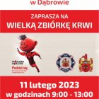 Ochotnicza Straż Pożarna w Dąbrowie zaprasza na Wielką zbiórkę Krwi, która odbędzie się 11 lutego 2023 roku w godzinach od 9:00 do 13:00 w Domu Kultury w Dąbrowie.