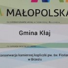 Gmina Kłaj otrzymała 12.000 zł w formie dotacji na realizację zadania pod nazwą: „Konserwacja kamiennej kapliczki pw. Św Floriana w Brzeziu”