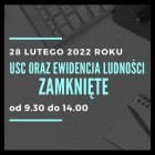 Informacja o zamknięciu USC i Ewidencji Ludności w dniu 28 lutego