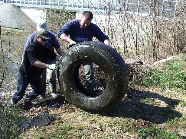 Akcja sprzątania rzeki Raby i starorzecza w okolicy Kłaja i Stanisławic organizowana przez Koło Polskiego Związku Wędkarskiego Bochnia Miasto odbyła się 2 kwietnia b.r. O godzinie 8.00 na miejsce zbiórki w okolicy wiaduktu autostrady A4 przybyło 32 osoby chcące aktywnie włączyć się w udział przy zbieraniu śmieci z okolicznych terenów i byli to: wędkarze z kół PZW Bochnia- Miasto i Stalprodukt, członkowie Społecznej Straży Rybackiej z Bochni oraz Klubu Spinningowego „Zębaty”, a także przedstawiciele firmy KAJMAG – Spływy Kajakowe. Uczestnikom rozdano worki na śmieci oraz rękawice. Podzielono się na cztery grupy. Pierwsza i druga odpowiedzialna była za wysprzątanie terenów przyległych do starorzecza od strony północnej i południowej względem A4. Część osób usuwała dzikie wysypiska wzdłuż rzeki Raby od strony Stanisławic. Czwarta grupa – panowie z firmy KAJMAG zbierali śmieci „z wody”. Dzięki wykorzystaniu kajaków udało się dotrzeć do odpadów unoszących się na powierzchni wody w najmniej dostępnych miejscach. Taczkami i przy użyciu przyczep samochodowych dowożono zebrane śmieci do podstawionych kontenerów. Podczas akcji uczestnicy mogli liczyć na gorący posiłek oraz kawę i herbatę. Po krótkiej przerwie kontynuowano mozolną pracę. Za pomocą wyciągarki samochodu terenowego z toni wodnej i mułu usunięto kilkanaście opon pochodzących prawdopodobnie z TIRa i koparki oraz porzucony ponton. Akcję sprzątania zakończono około godziny 18.00. uwieńczeniem pracy było wkopanie dwóch słupków z tablicami informującymi o zakazie wyrzucania odpadów.
