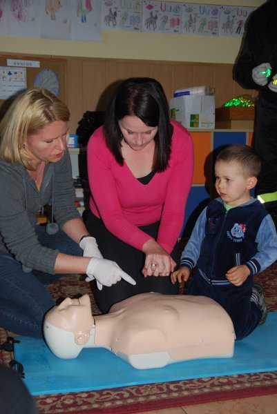 O tym, że od najmłodszych lat można szkolić się w zakresie pierwszej pomocy przekonuje prowadzący zajęcia, Robert Kmiecik - W popularnym serwisie internetowym jest film, który pokazuje jak 10 - miesięczne dziecko ratuje osobę dorosłą wykonując swoim ciałem uciski na jej klatce piersiowej.