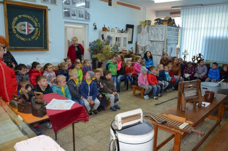28 kwietnia gościliśmy w naszej Izbie Regionalnej czterdziestoosobową grupę przedszkolaków ze Skawiny. Dzieciaki miały okazję poznać metody i sprzęty służące do prania oraz prasowania w dawnych czasach. Do zajęć zostały wykorzystane rekwizyty znajdujące się w Gminnej Izbie Regionalnej w Kłaju.