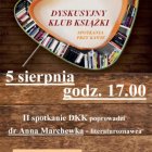 Zapraszamy 5 sierpnia o godz. 17.00 na drugie spotkanie Dyskusyjnego Klubu Książki. Spotkanie poprowadzi dr Anna Marchewka – literaturoznawczyni, krytyczka literacka, autorka książek i artykułów.