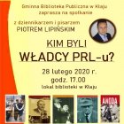 Gminna Biblioteka Publiczna w Kłaju zaprasza na spotkanie z dziennikarzem i pisarzem Piotrem Lipińskim.