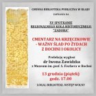 Prelekcję pt. „Cmentarz na Krzęczkowie – ważny ślad po Żydach z Bochni i okolicy” wygłosi dr Iwona Zawidzka z Muzeum im. Prof. Z. Fishera w Bochni.