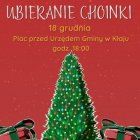 Wójt Gminy Kłaj serdecznie zaprasza wszystkich Mieszkańców Gminy Kłaj na Wspólne Ubieranie Choinki, które odbędzie się 18 grudnia 2022 roku od godziny 18:00 na placu przy budynku Urzędu Gminy w Kłaju.