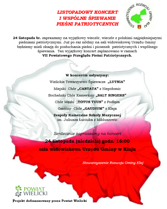 LISTOPADOWY KONCERT I WSPÓLNE ŚPIEWANIE PIEŚNI PATRIOTYCZNYCH