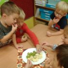 W ostatni dzień tygodnia, podsumowujący tematykę związaną z owocami, grupa Smerfów z grodkowickiego przedszkola przygotowała pyszną sałatkę owocową.