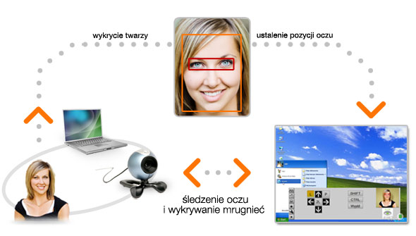 Do korzystania z komputera za pomocą jedynie kamera internetowa. Przy podłączaniu i ustawieniu kamery, a także instalacji programu b-Link, niezbędna jest pomoc osoby sprawnej. Odpowiednio ustawiona kamera, po wykryciu twarzy użytkownika i ustaleniu pozycji oczu, śledzi je i wykrywa mrugnięcia sterujące. W ten sposób, wyłącznie za pomocą mrugnięć, można poruszać się po stronach www, korzystać z programów system MS i inne. Przed rozpoczęciem pracy z programem b-Link, wskazane jest zapoznanie się z treścią instrukci użytkownika, która znajduje się w załącziku poniżej. Instrukcją b-link szybki start, pozwi jego użytkownikowi zdobyć podstawowe informacje o programie oraz ułatwi opanowanie zasad jego obsługi.